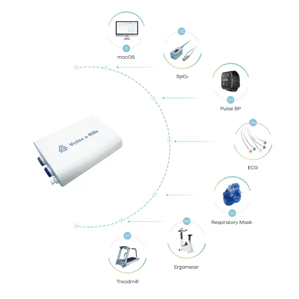 Intergrate with the functions of ERGO-ER/WASSERMAN-9/AT/INTRABREATH/QT CALE/RESP-DIVER/CALORIMETRY/WORK-LOAD/DATA-LIST
